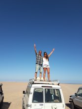 Auf dem Weg dort hin, kletterten wir auf das Dach der Geländewagen und konnten von dort eine Fata Morgana sehen!