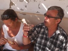 In Hurghada angekommen haben wir etwas gebraucht, um uns einzuleben. Die erste Unterkunft war ganz schön, bis wir dann im Mai eine viel schönere gefunden hatten. Das Bild mit dem grünen "Häuschen" war der erste Friseur meines Mannes. Die Strände sind herrlich mit kristallklarem Wasser! Das Bild mit mir am Straßenrand, da warten wir auf den Bus. Der fährt uns 12 km in die Stadt für 25 Cent pro Person. Wir sind mit dem Boot rausgefahren und haben unseren ersten Tauchgang ausprobiert. Es gibt einen sehr großen Gemüsemarkt, wo man alles sehr günstig einkaufen kann. Ein deutsches Restaurant haben wir ausfindig gemacht und auch ein Lieblingsrestaurant haben wir gefunden. Meine Nichte war einige Zeit bei uns und wir haben viele, liebe, deutsche Auswanderer kennen gelernt, die sich hier nieder gelassen haben.