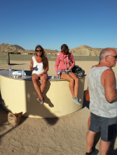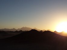 Auf dem Rückweg machten wir noch einen Stop, um den Sonnenuntergang in der Wüste zwischen den Bergen genießen zu können.